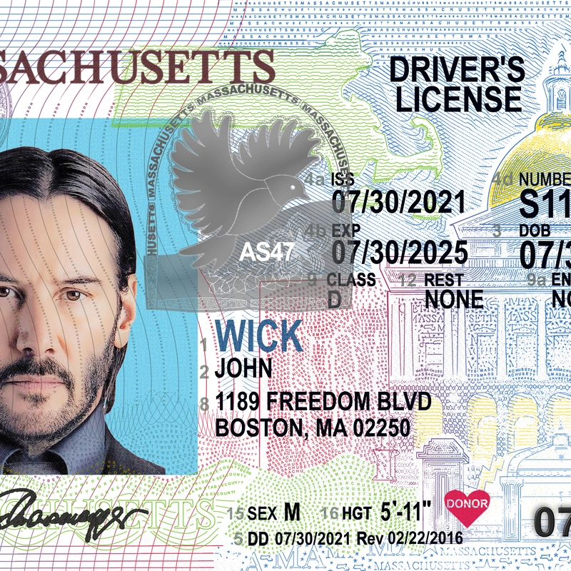 Our United States (Massachusetts) Driver License New PSD Template – a premium, fully editable Photoshop design. With a layered structure, it's a snap to personalize, enabling photo, address, ID number, barcode, birthdate, height, weight, and name/address adjustments with ease.